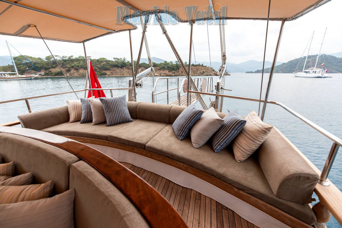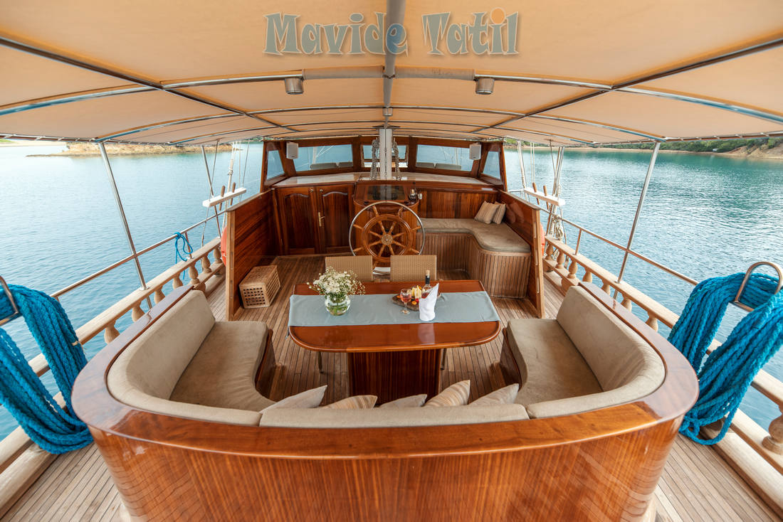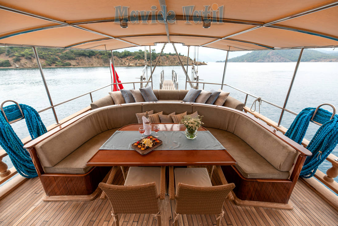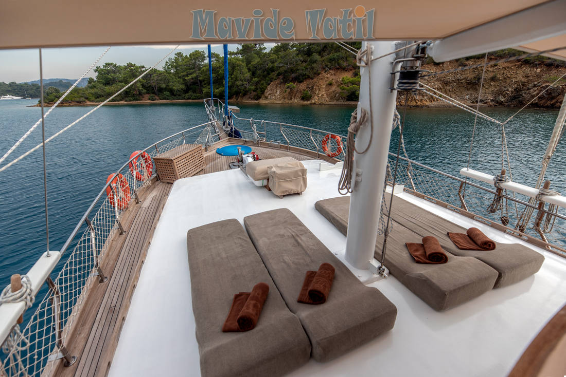 Ceylan Gulet tik güvertesi rahat güneşlenme ve keyifli zaman geçirmenizi sağlamaya yönelik düzenlenmiştir.