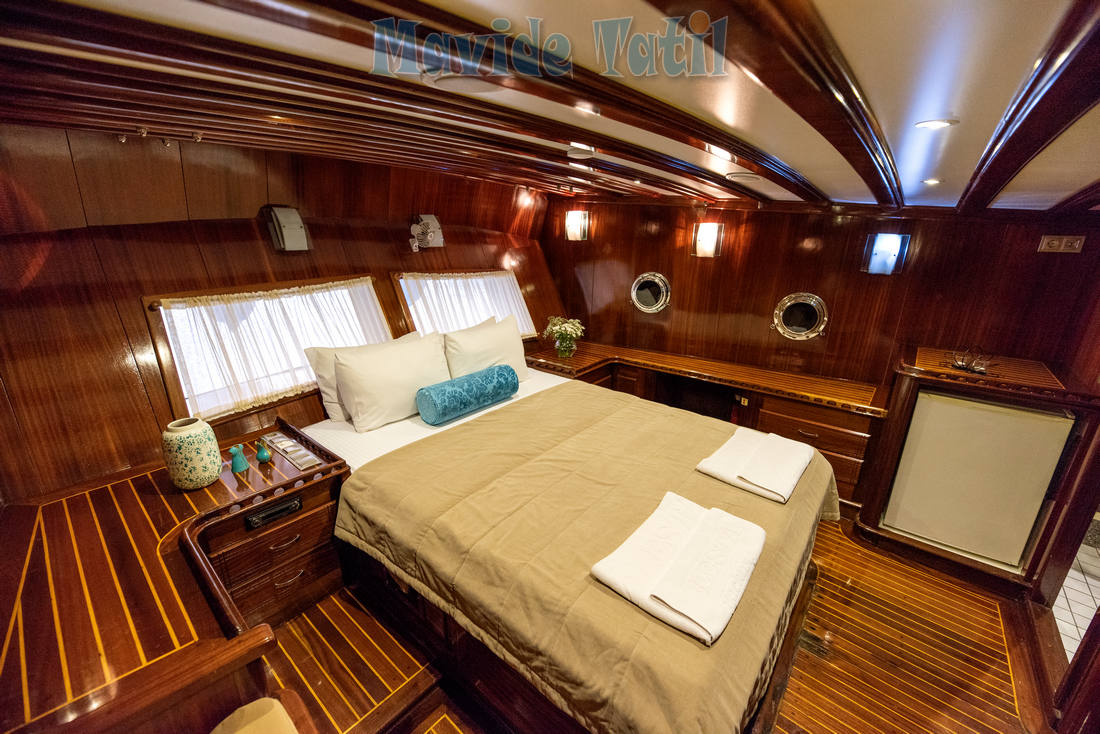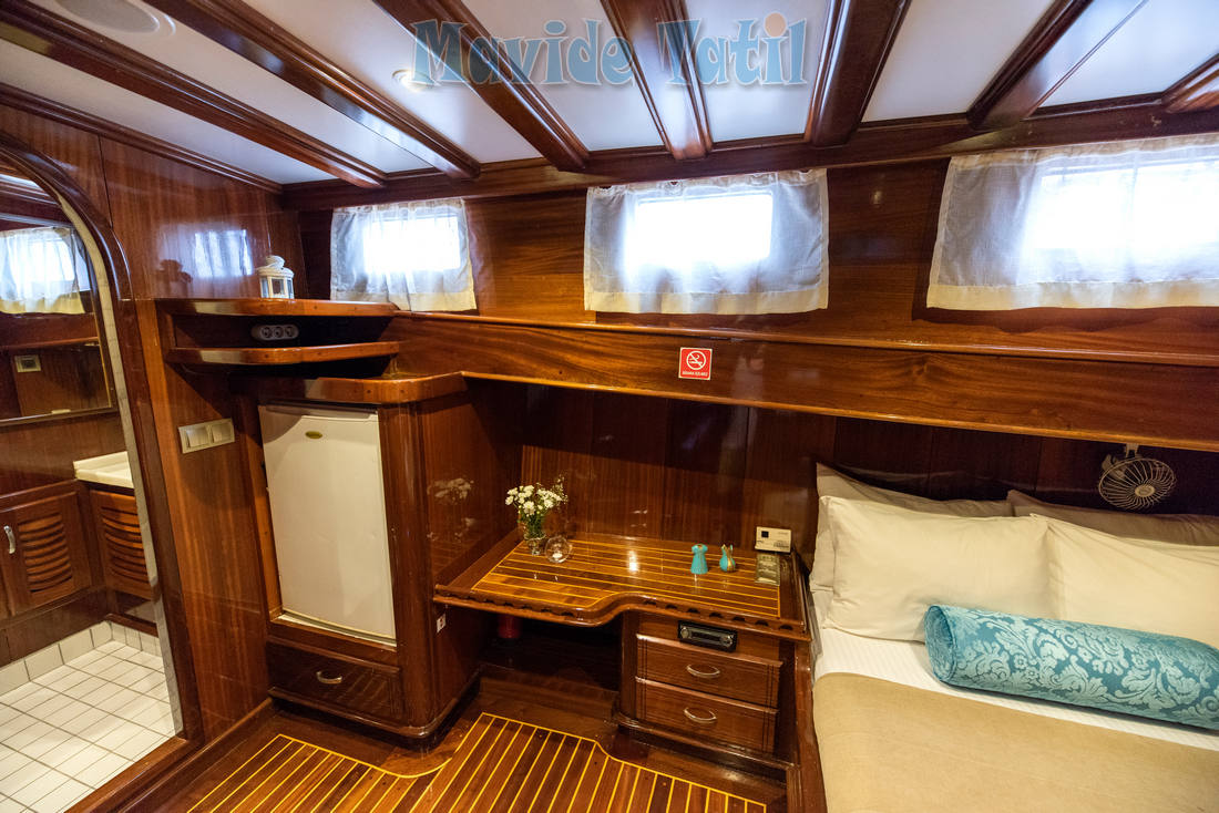 Ceylan Gulet küçük gruplarınız için ideal, 20 metre, 6 kişilik haftalık kiralık teknemizde 1 master, 2 double kamara bulunmaktadır. Kamaraların tamamında duş, tuvalet, klima, saç kurutma makinesi, TV, ses sistemi ve minibar vardır.