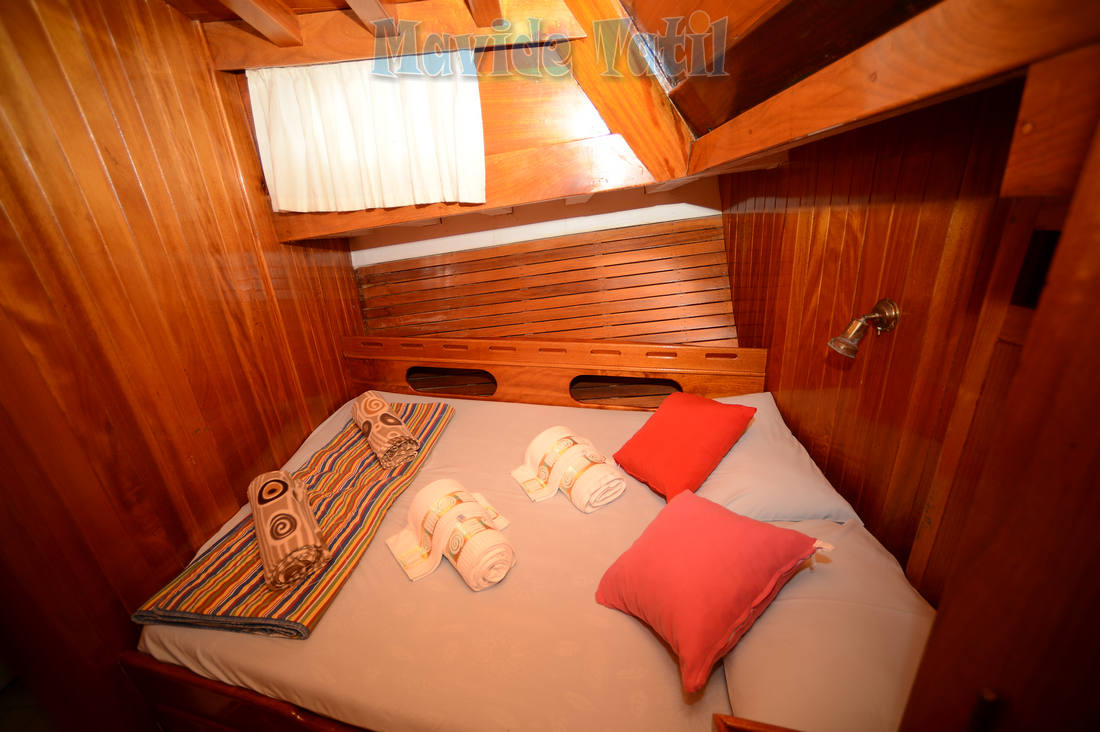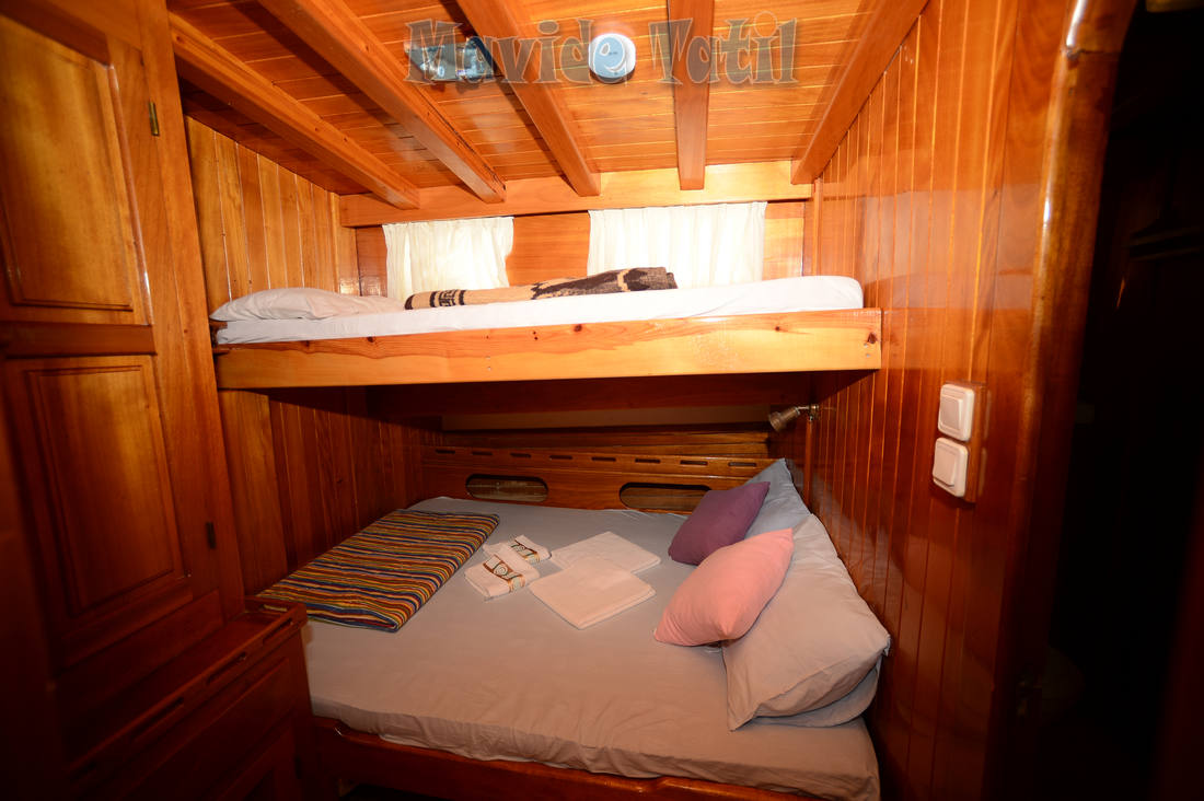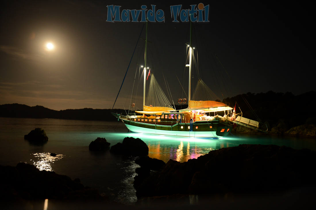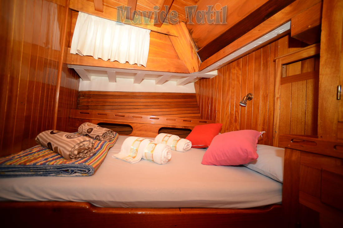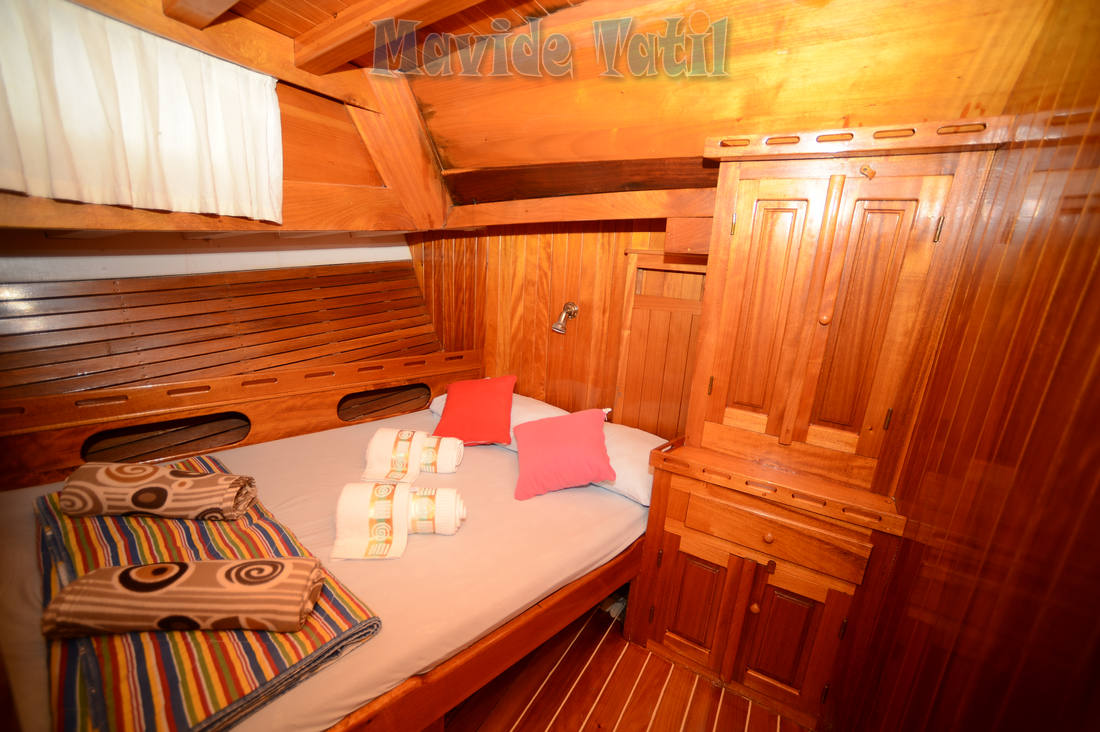 24 metre, 7 kamaralı teknemiz, 6 double, 1 master kamarasıyla 14 kişiye kadar hizmet verebilmektedir. Bütün kamaraları klimalı, duş ve tuvaletlidir.