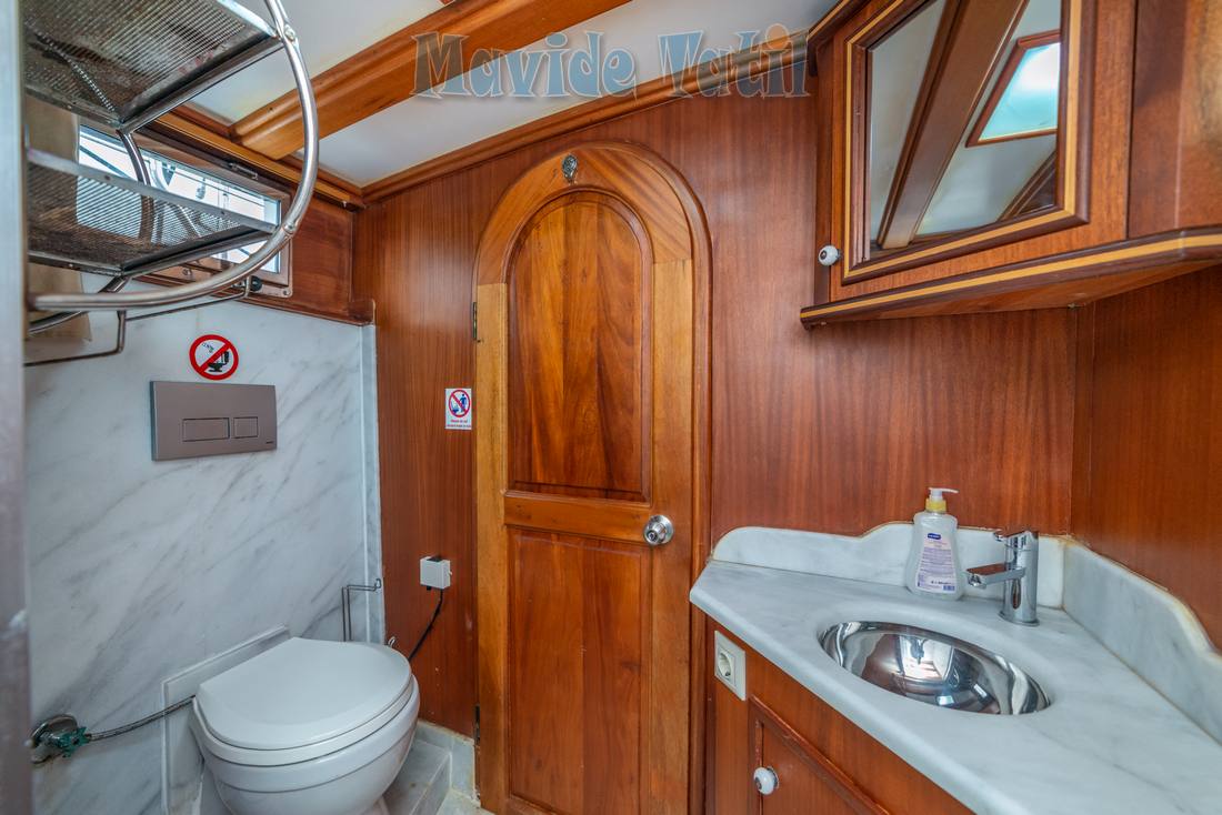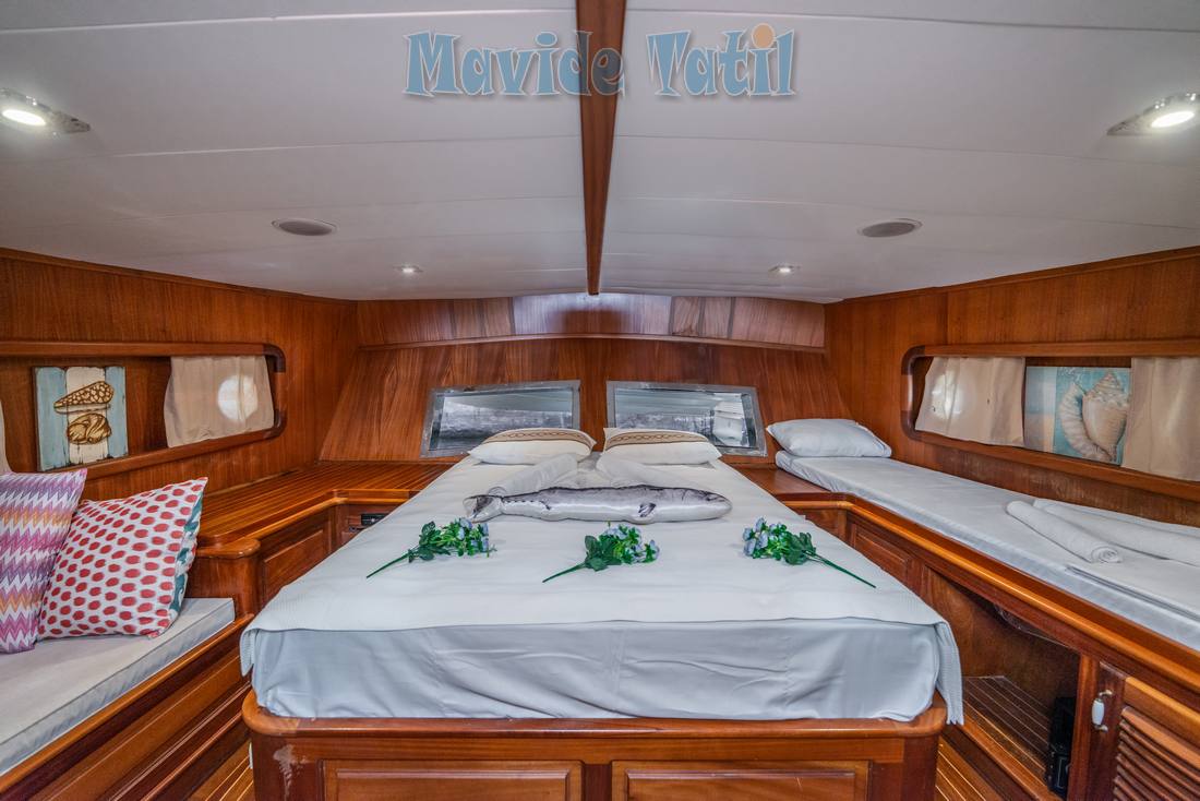 20 metre boyundaki kiralık gulet tipi teknenin 1 master, 2 double kamarası toplam 6 kişiye kadar konaklama olanağı sunmaktadır.