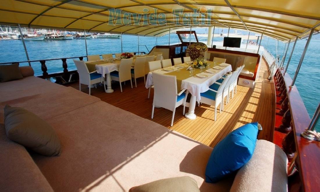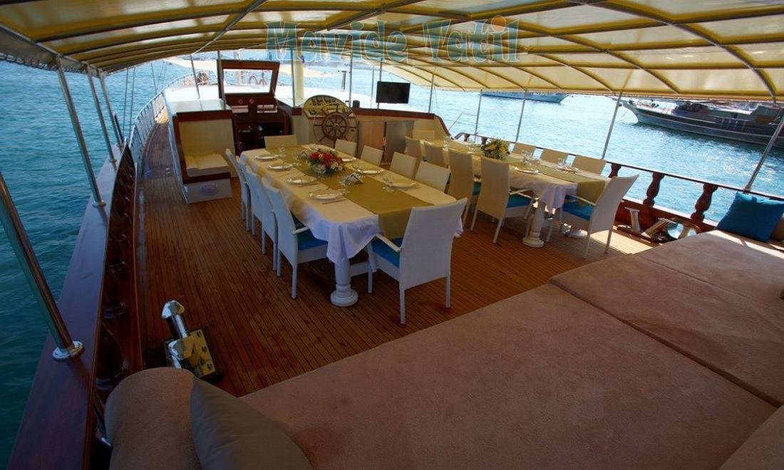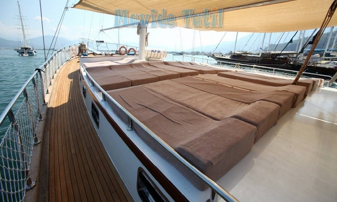 Holiday 5 gulet geniş ön ve arka güvertesi misafir kapasitesine uygun genişlikte bir güneşlenme ve yaşam alanı sunmaktadır.