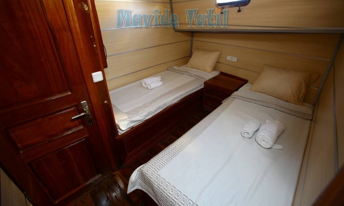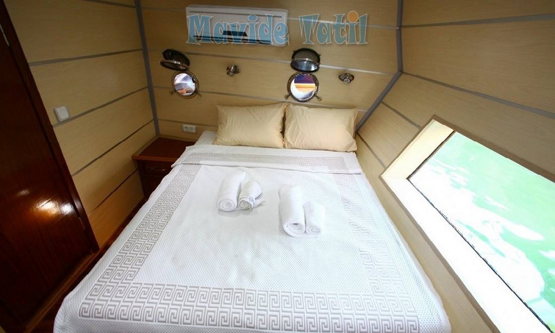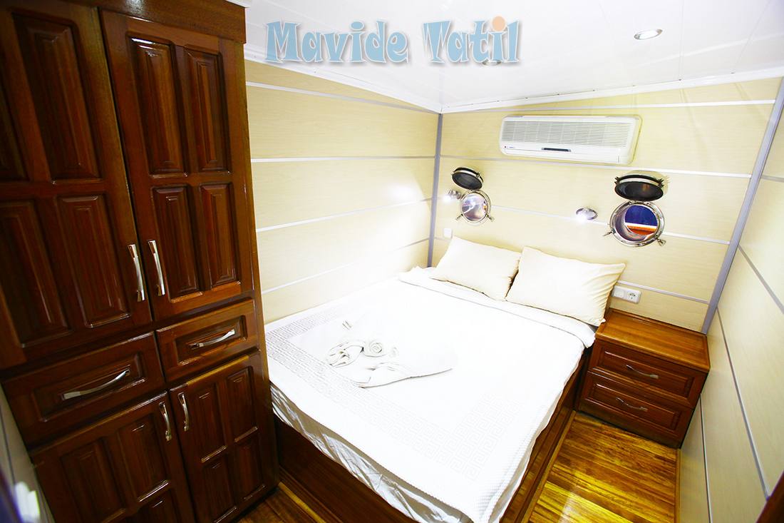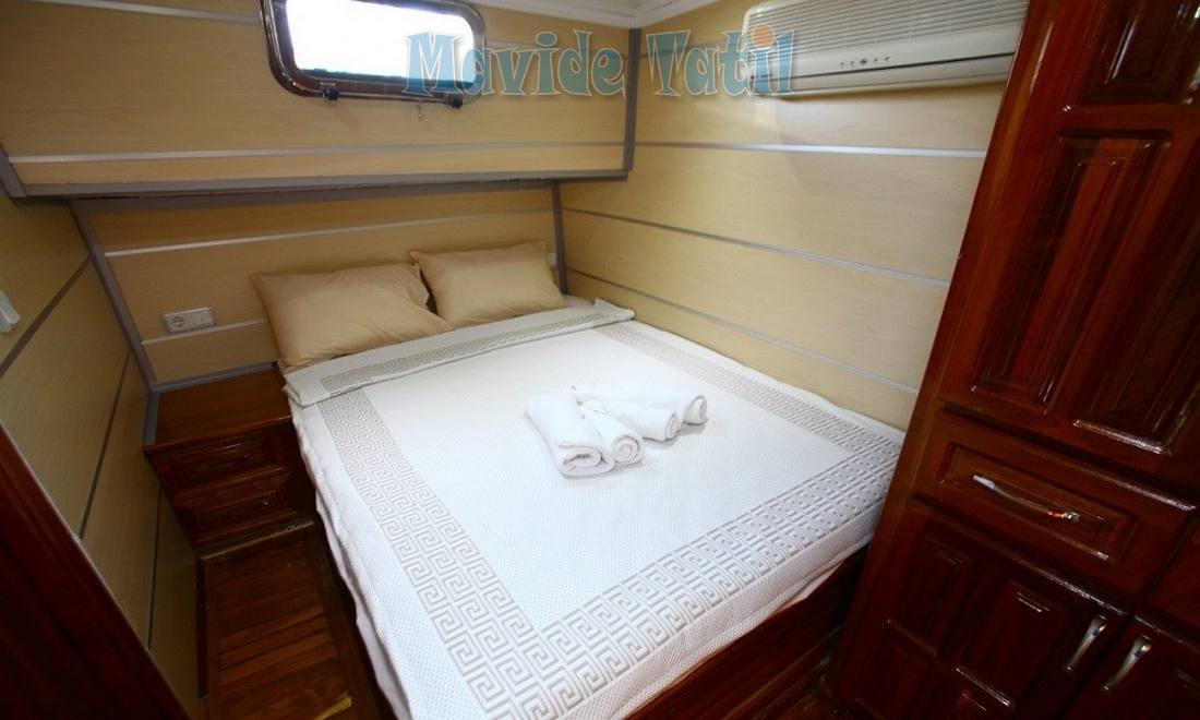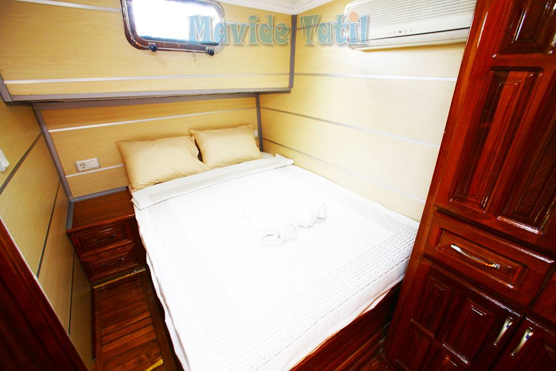 31 metre uzunluğundaki kiralık gulet tipi teknemizin 8 double, 2 twin olmak üzere toplam 10 kamarasının tamamı klimalıdır.