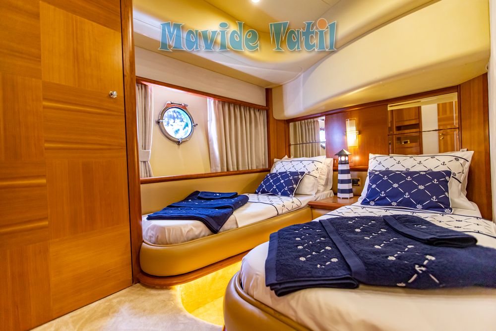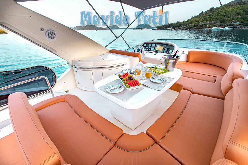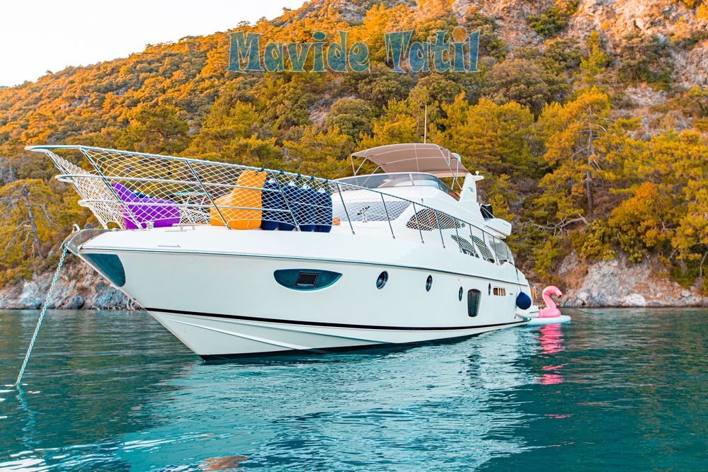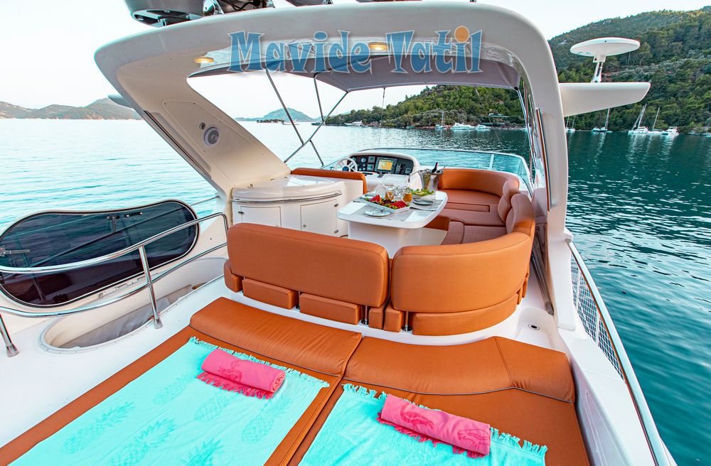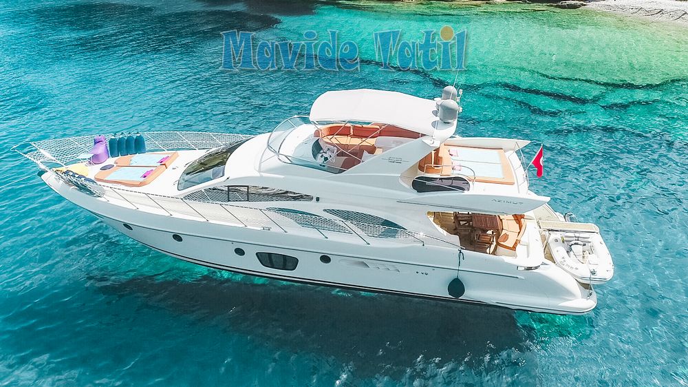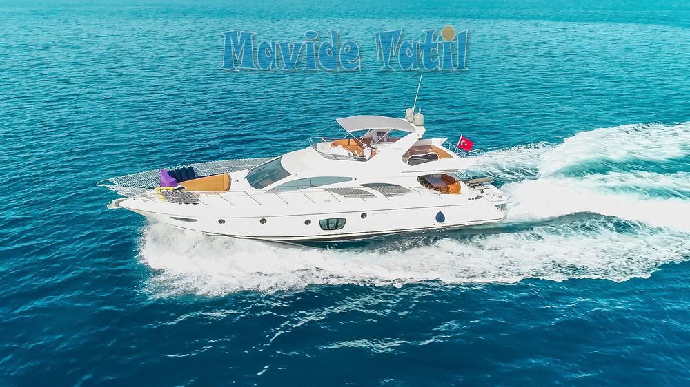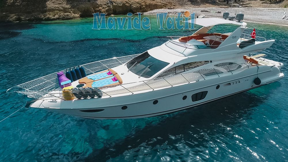 Azimut motoryat tipi 21 metre uzunluğundaki tekne 3 kabin 6 kişilik kapasitesiyle Fethiye ve Göcek koylarında yat tatili hizmeti vermektedir.