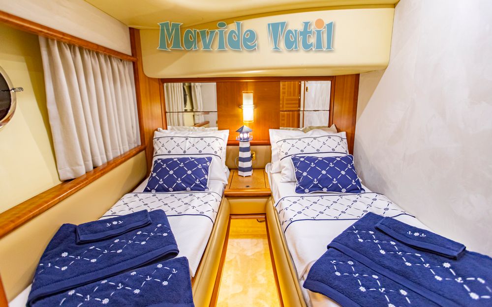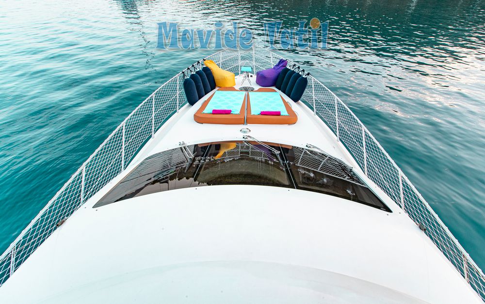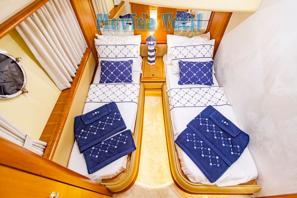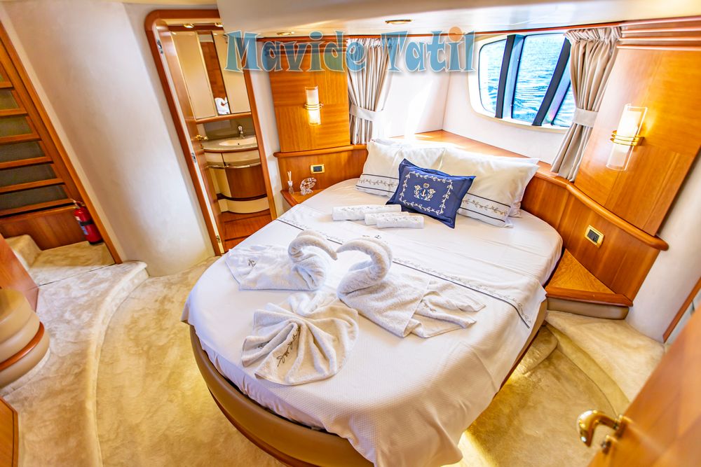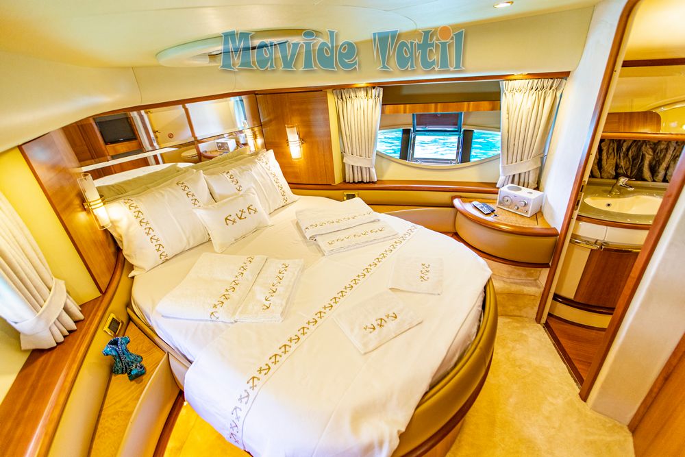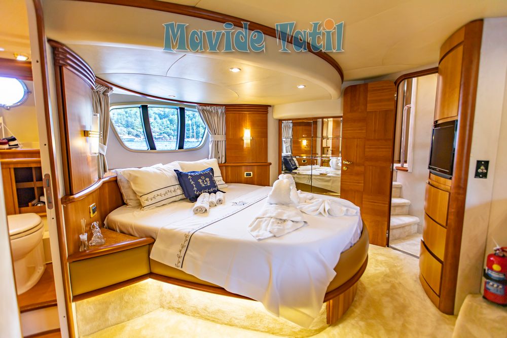 Azimut motoryat tipi 21 metre uzunluğundaki tekne 3 kabin 6 kişilik kapasitesiyle Fethiye ve Göcek koylarında yat tatili hizmeti vermektedir.